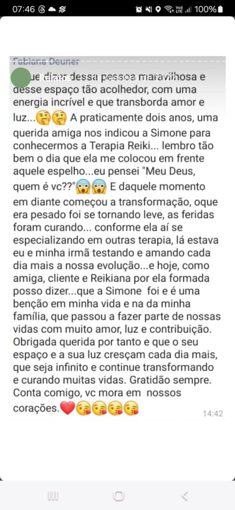 Sou Fluidoterapeuta e Apometra especializada, espiritualista acadêmica, licenciada pela ABRACONESP – Academia Brasileira de Conscienciologia Espiritualidade e Pós Humanismo. Sou Reiki Master em Usui Tibetano Tradicional, Karuna Ki e Cacique xamã Amadeus. Também técnicas energéticas de Cristaloterapia, Cromoterapia. Sou Massoterapeuta em Terapêutica, Relaxante e Drenagem Linfática. Assim como ministro cursos de Reiki em Três Linhagens: Reiki Usui Tibetano Tradicional, Reiki Karuna Ki e Reiki Xamânico AmaDeus e Fluidoterapia. Graduanda em Conscienciologia Clínica pela ABRACONESP.